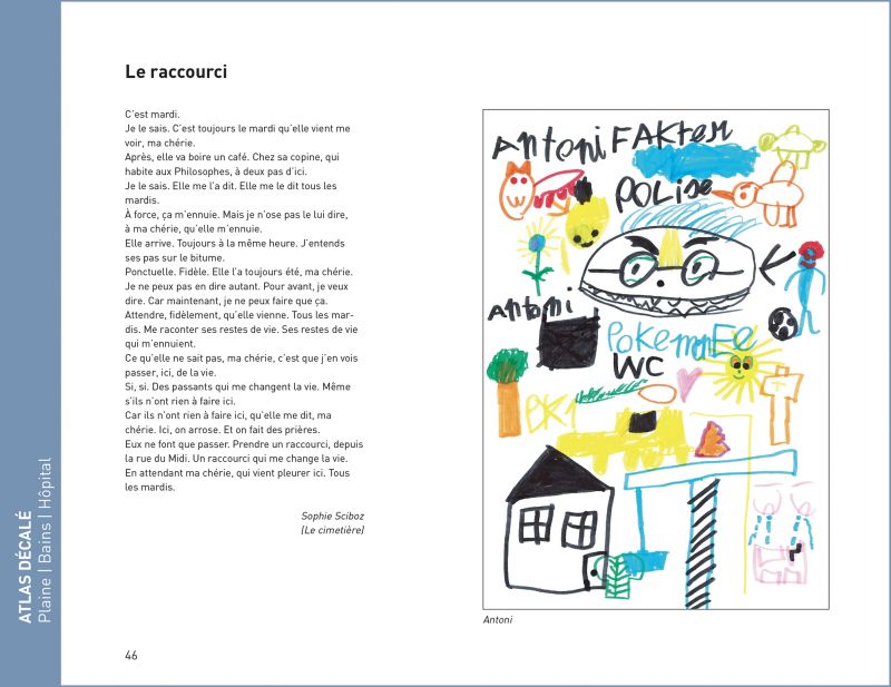 Un Atlas décalé online présente les œuvres au fil de la publication. Il invite aussi à découvrir les textes et images créés lors d’ateliers que nous avons donné avec Blaise ainsi que les contributions d’internautes. Les Éditions de la Thièle ont édité aussi un recueil.