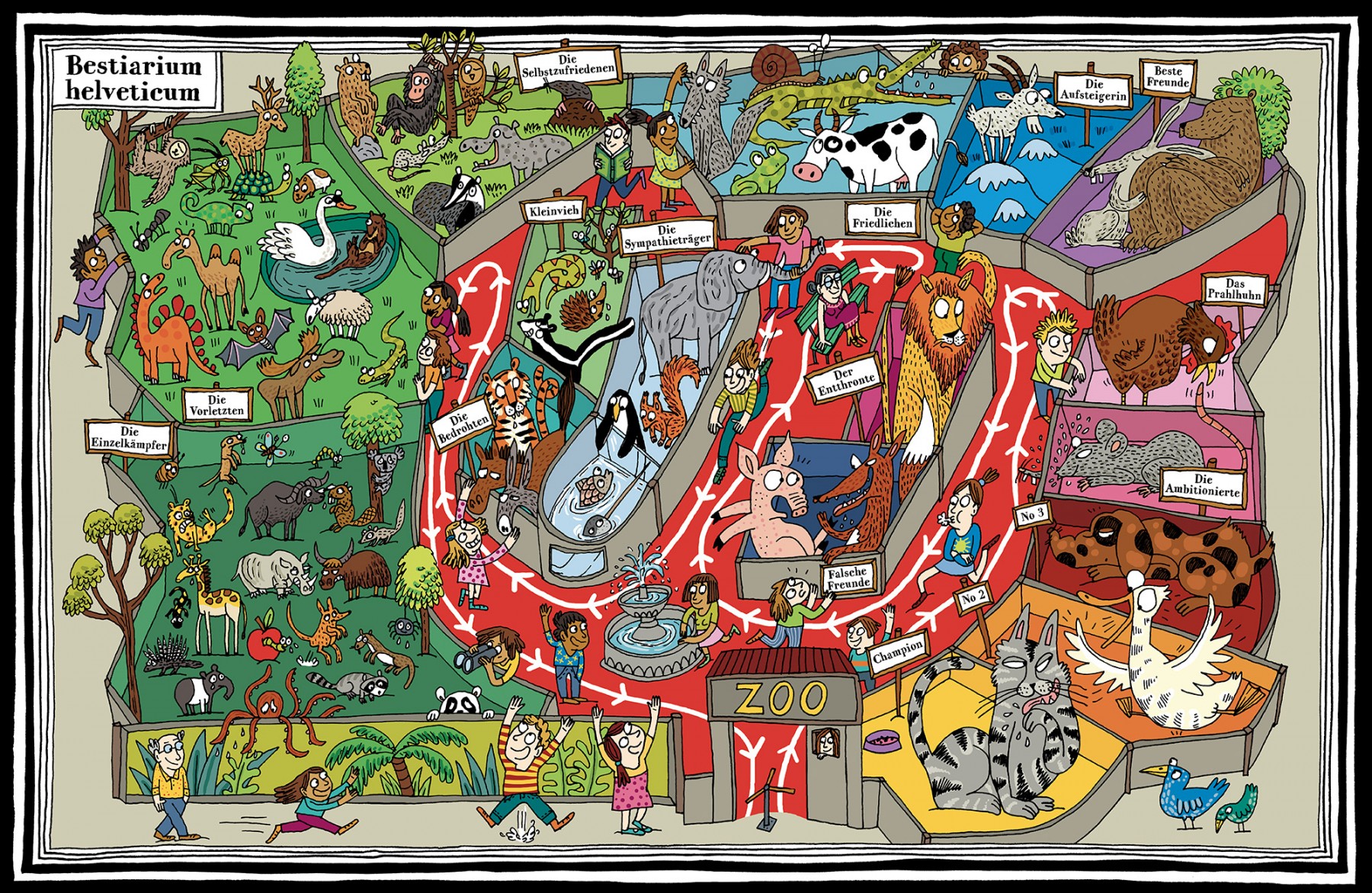 Inventaire qui retrace les animaux présents dans les livres jeunesse suisse sur un texte de Franz Lettner.
