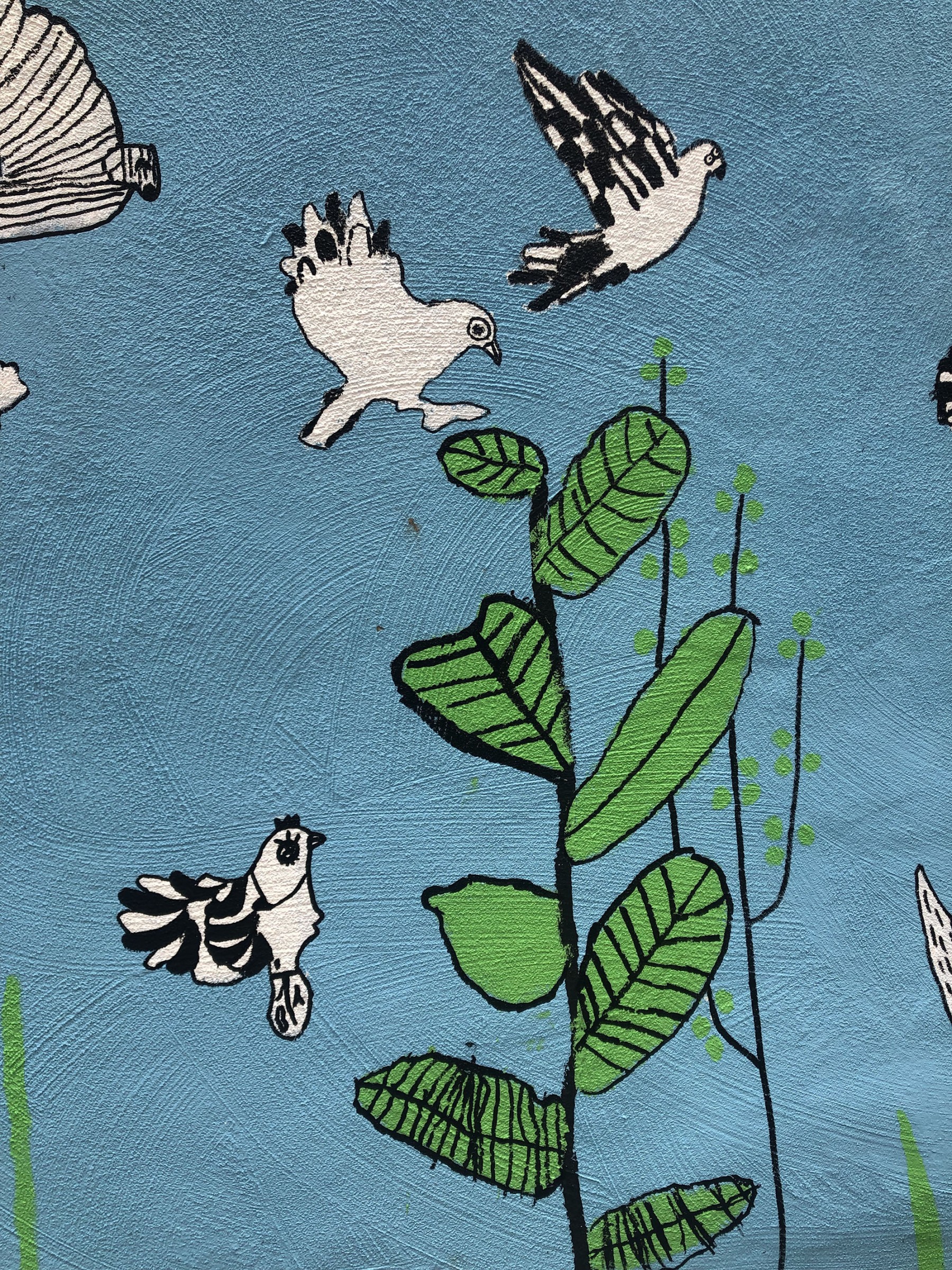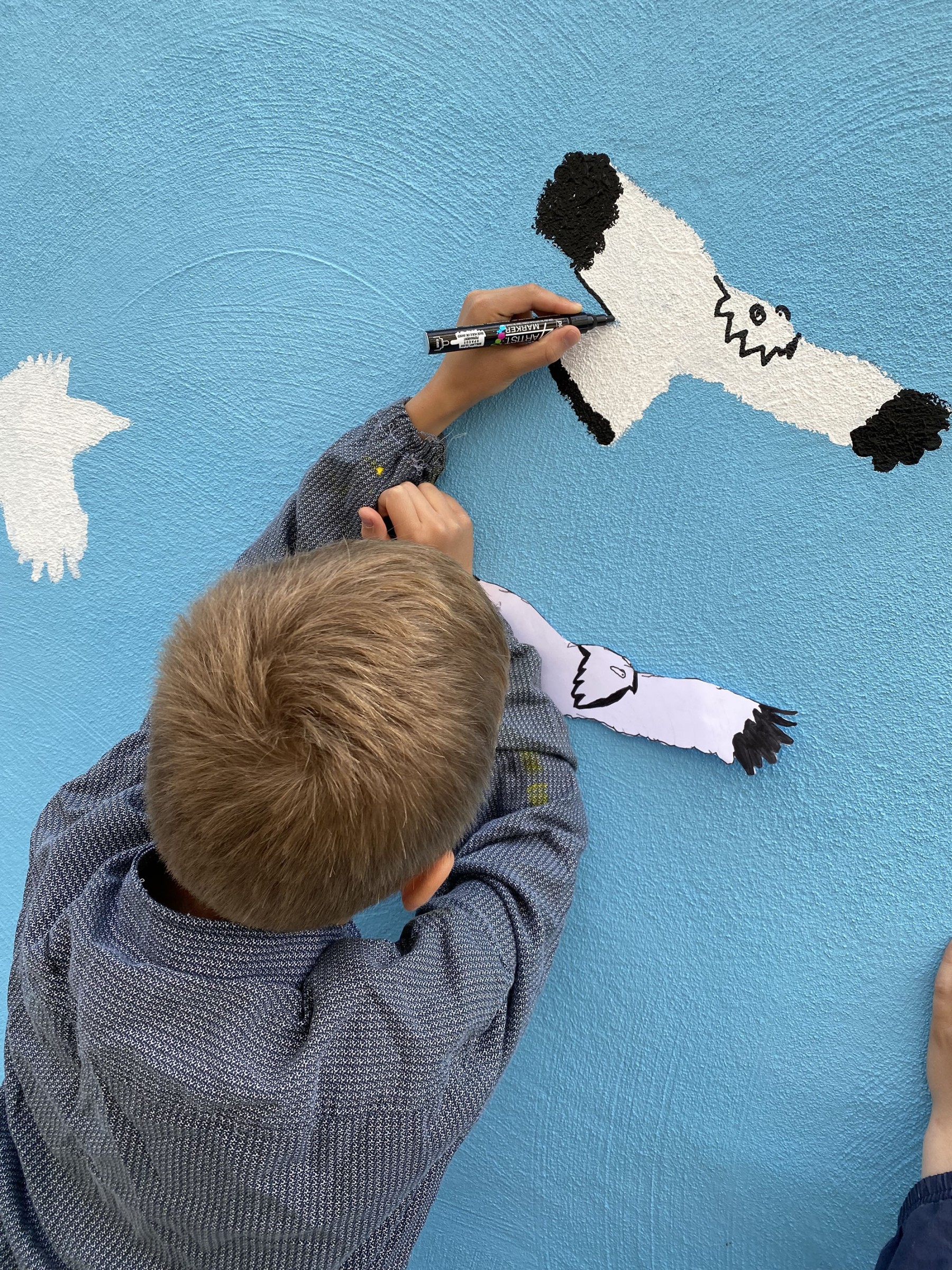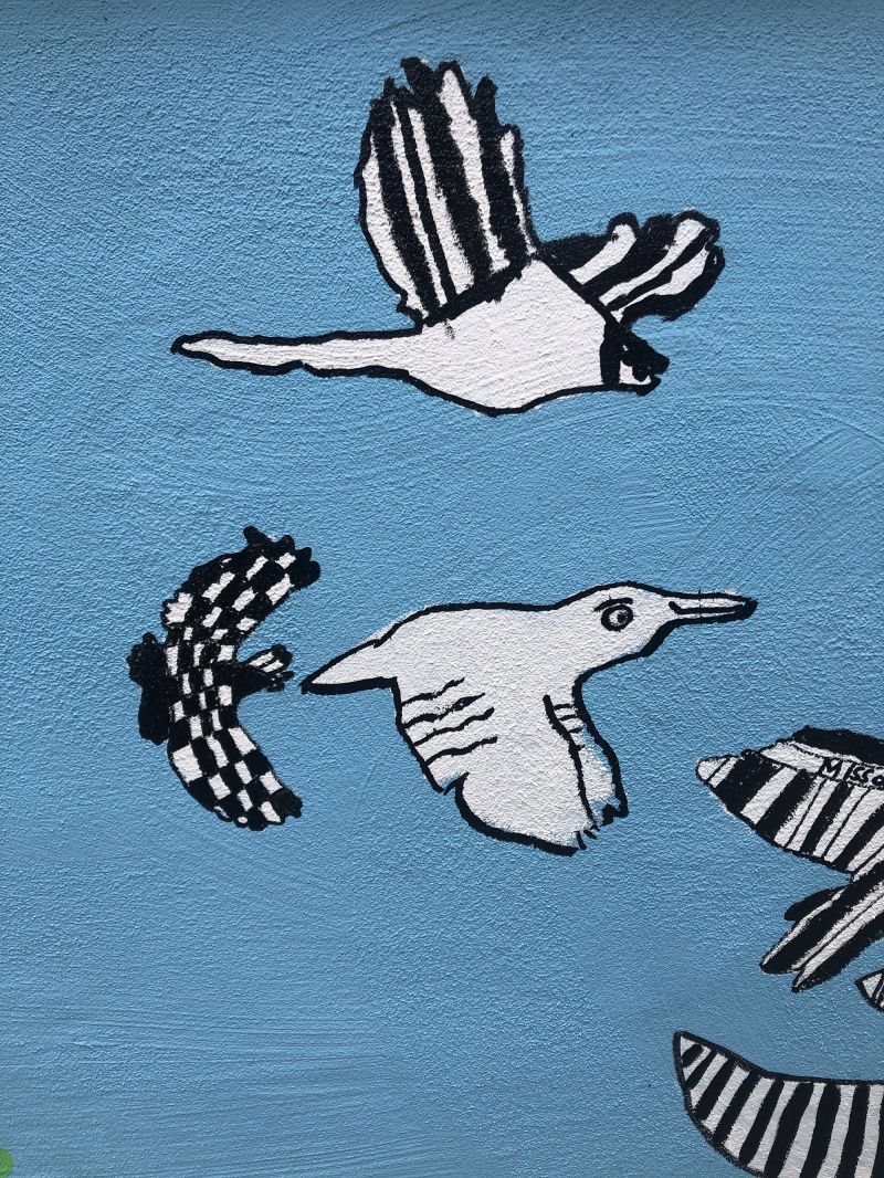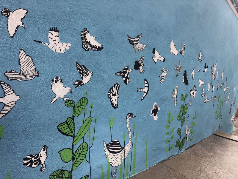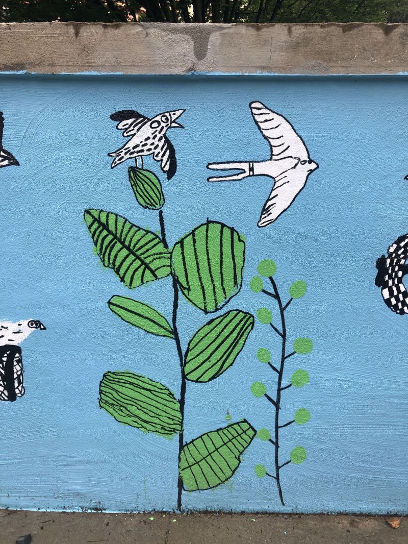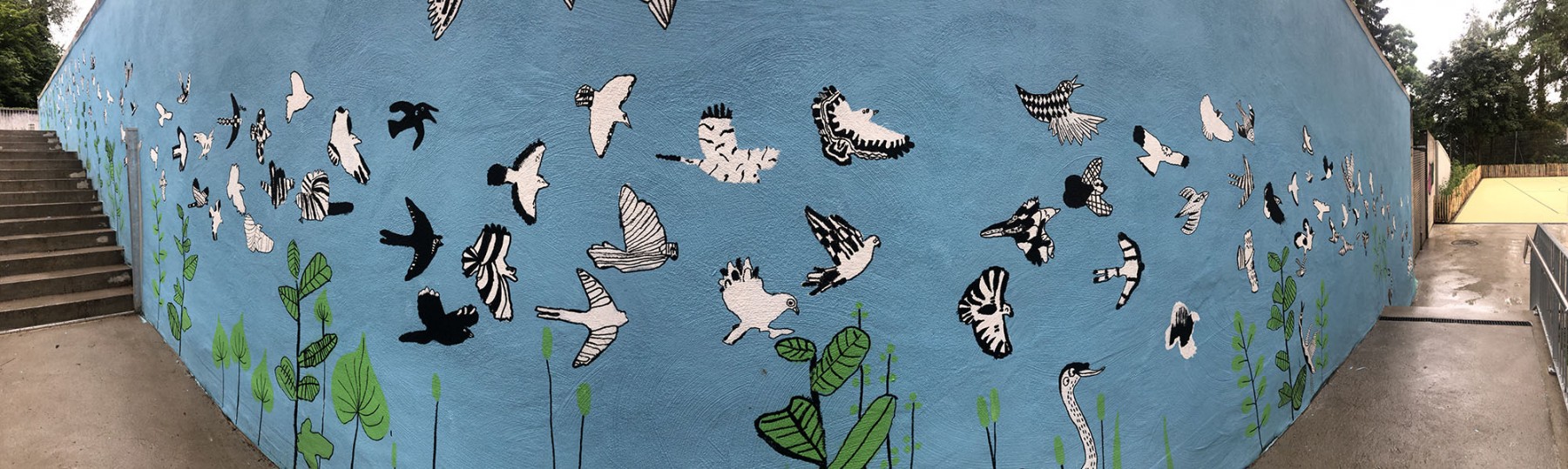 Création d’une fresque de presque 33 m avec les élèves du collège de l’Eglantine à Lausanne sur le thème des oiseaux de chez nous. Projet avec Sarah Freda, enseignante.