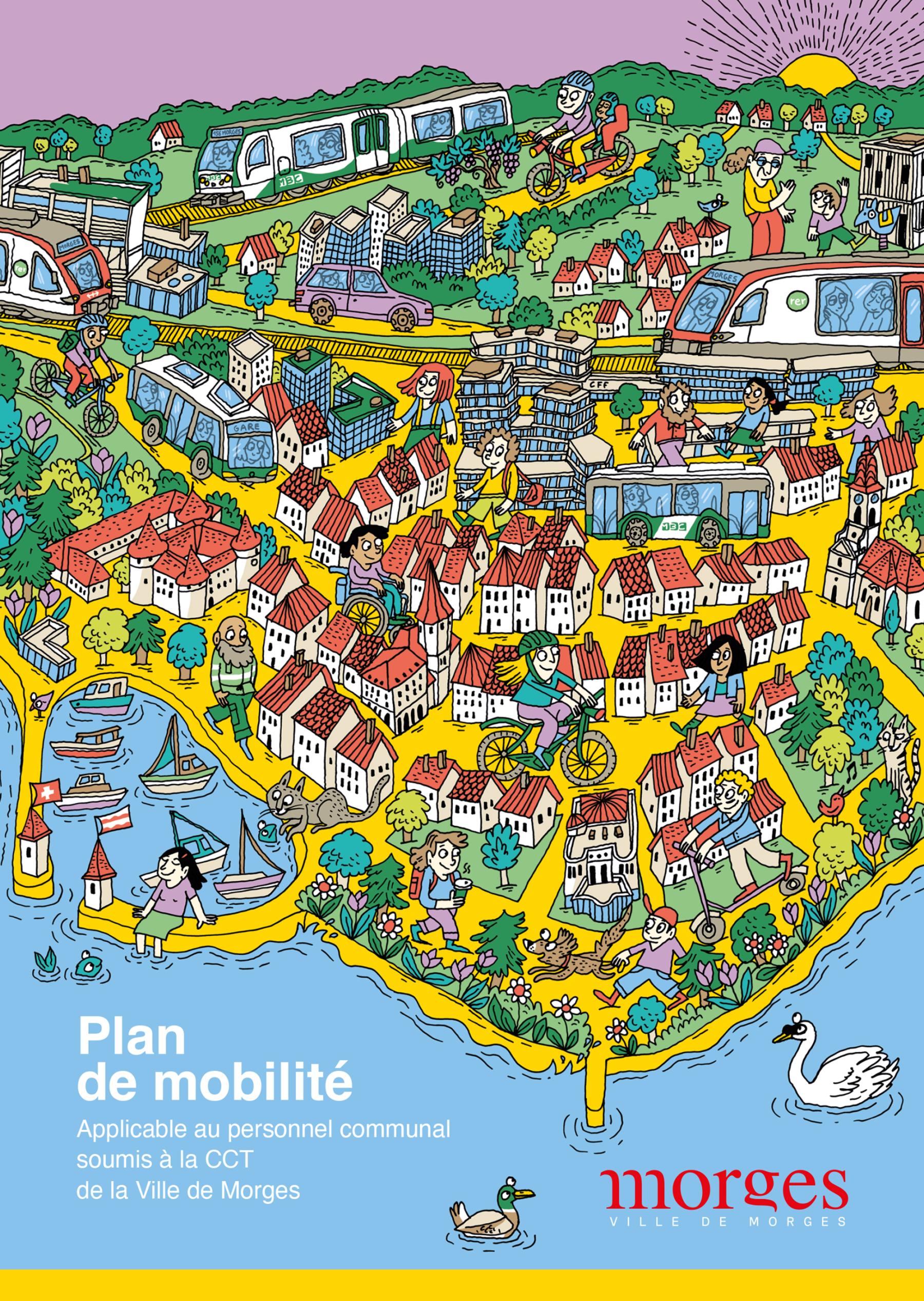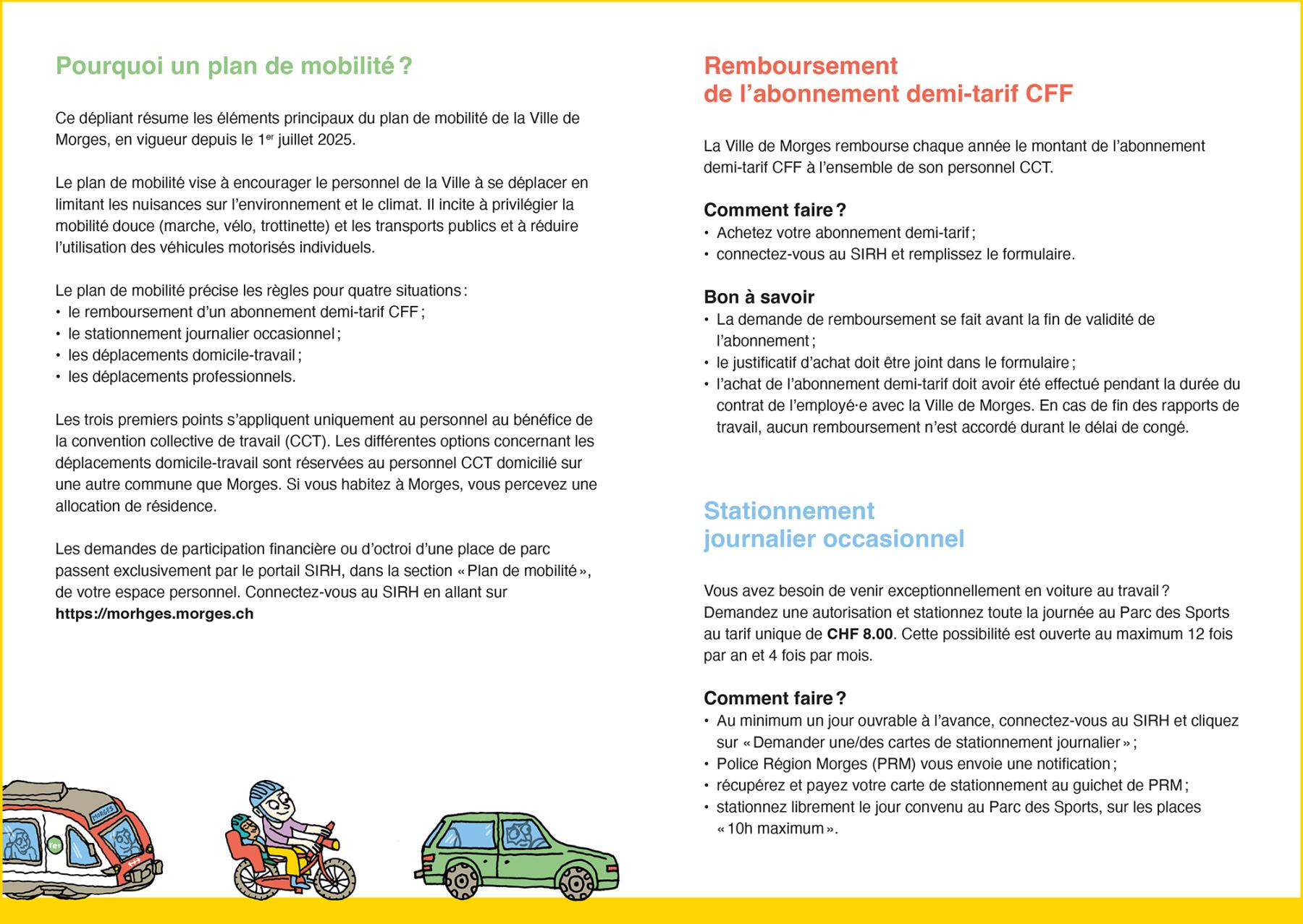 Réalisation de l’illustration et de la mise en page du dépliant interne Plan de mobilité, destiné aux collaborateurs de la Ville de Morges.