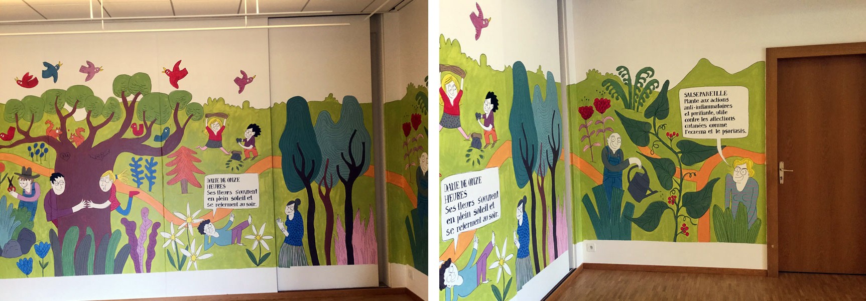 Fresque realisé à l’occasion d’une résidence à la Villa du Jardin alpin à Meyrin.
