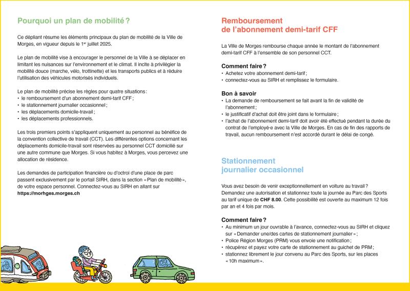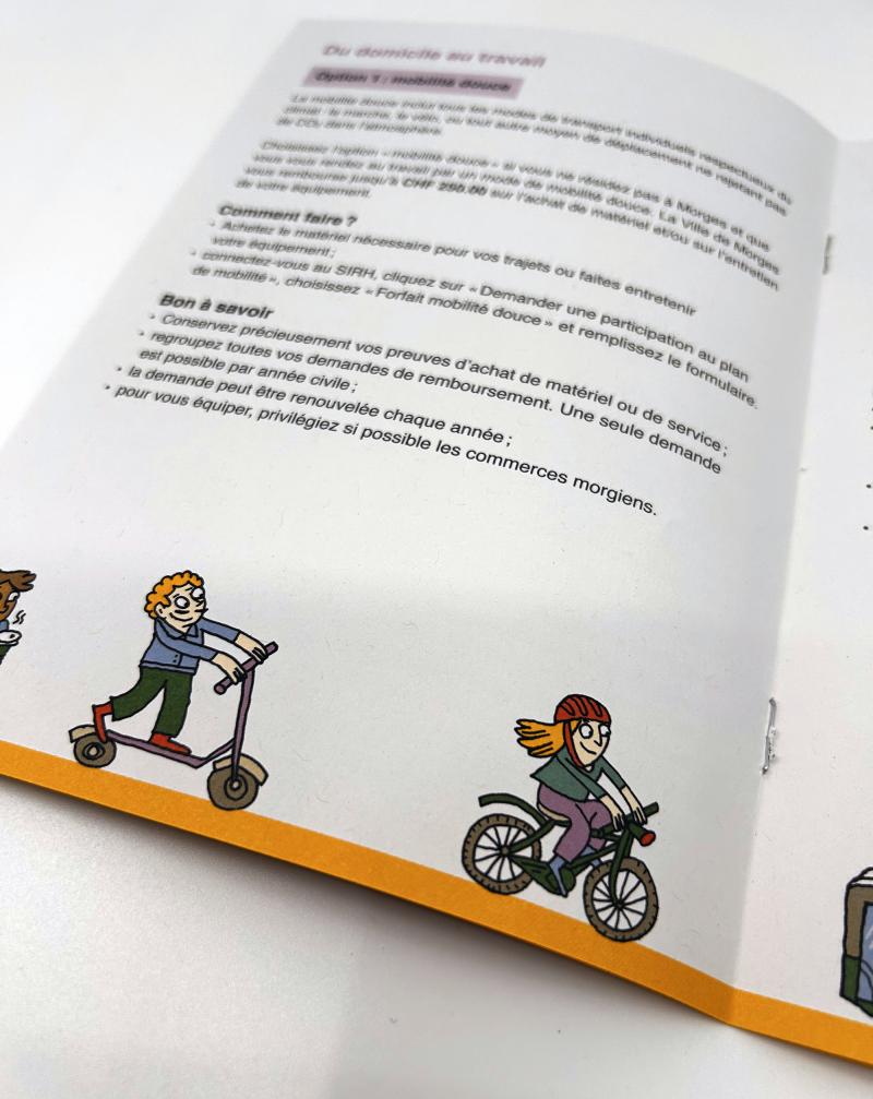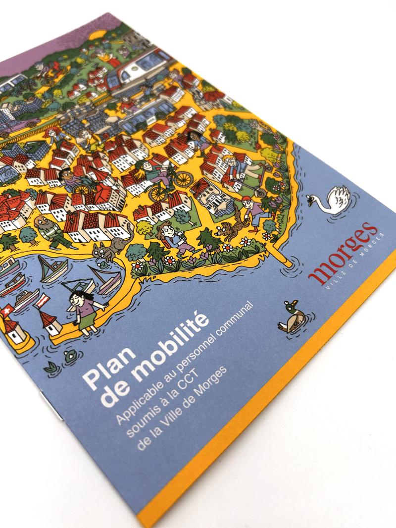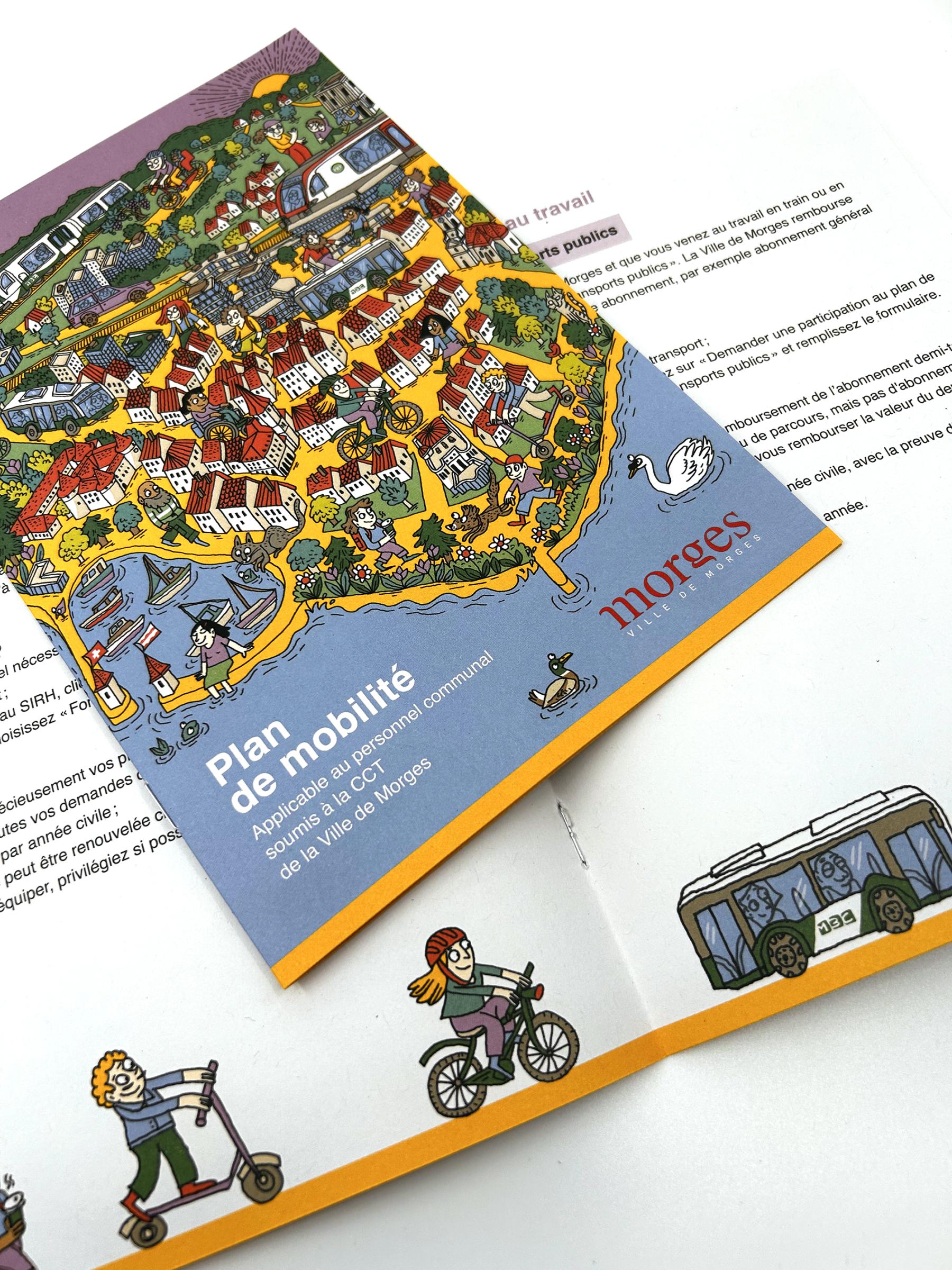 Réalisation de l’illustration et de la mise en page du dépliant interne Plan de mobilité, destiné aux collaborateurs de la Ville de Morges.